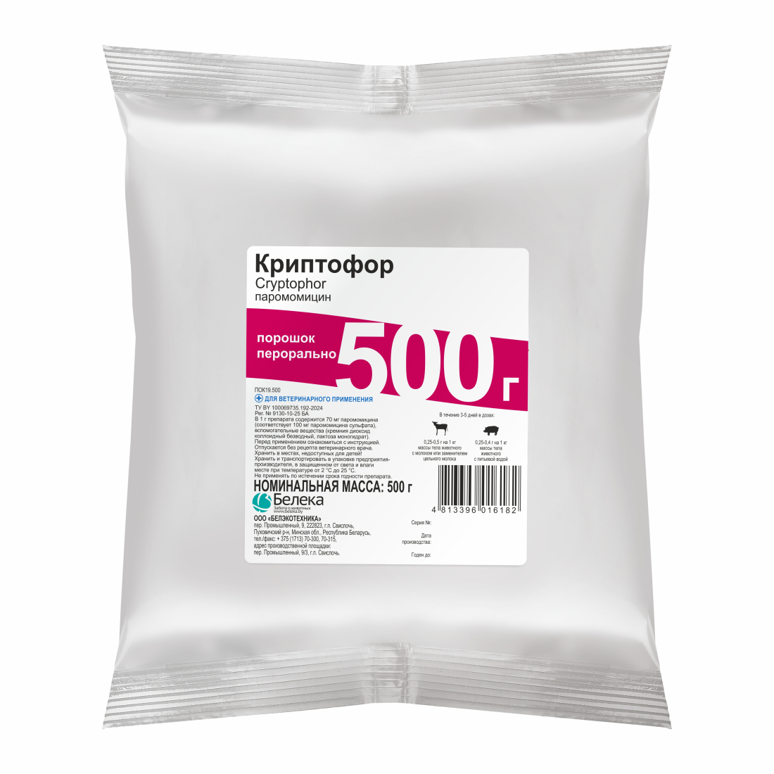 The drug is used for the treatment of young cattle and pigs with gastrointestinal diseases of bacterial etiology caused by microorganisms sensitive to paromomycin, including colibacillosis and cryptosporidiosis.